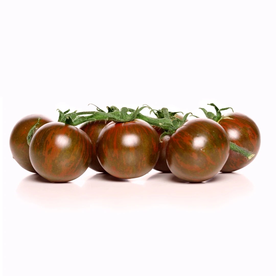 Plodovi: rastejo v grozdih in so rdeče opečnate do črne barve. Na posameznem grozdu je od 8 – 10 plodov. Tehtajo 40 – 45 g in imajo visoko vsebnost likopena. Obiramo jih lahko posamezno ali v grozdih. Ne pokajo.